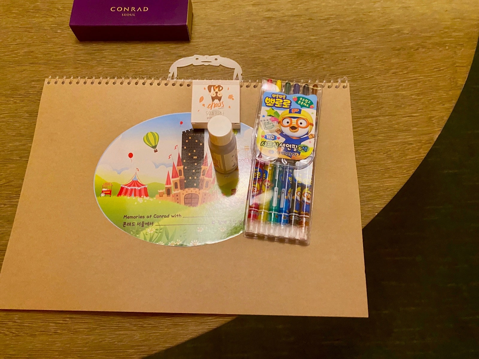 There was also a desk at the end of the room, and after that, there is excellent views of parts of Seoul as well as the Han River. On the desk, there was also a coloring book and some crayons. I think they left it for me. I really appreciate the thought behind that, but I think I am a bit too old for that. 😉