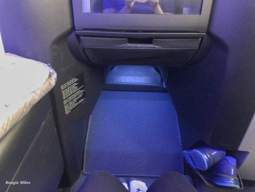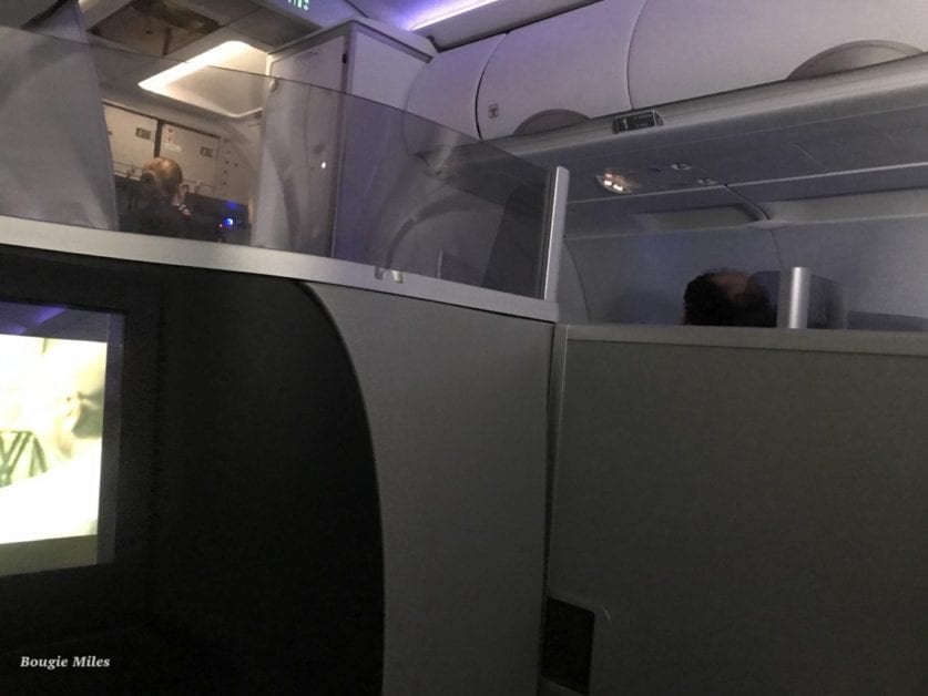 The Mint seats are spacious and comfy. They have some thoughtful and unique features like a massage function and a button to alert the FA if you’d like to be woken up for meals. The massage feature doesn’t work very well so I wouldn’t expect much on that front but it’s definitely relaxing for a very light back rub. Additionally there are 4 semi private Suite seats aka “Throne Seats” that close during flight for more privacy and have no neighboring seat. These throne seats are available to book on a first come first serve basis at the same price as the other seats in Mint. They are located in rows 2 and 4.